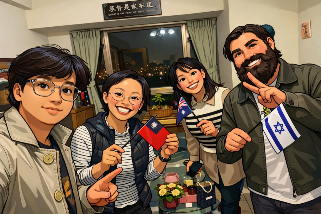 After hearing the introduction of “BBPN Beit Simcha” and understanding that we warmly receive Israelis because of the Bible and the Messiah, he was deeply moved. In a time of global instability and rising antisemitism, what he had often encountered in many nations was indifference or even hostility. Yet in Taiwan, he met a group of people who welcomed him with love—a love not rooted in culture or benefit, but grounded in faith. He was so touched that he proactively suggested that perhaps Israel could also have “Beit Simcha,” where families who delight in hosting and connecting could be linked together.